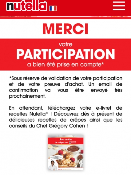 Bonsoir, merci pour le partage du jeu , pas de crêpe party pour le moment , je réessaierai plus tard , comme beaucoup le e-livret que je partage au cas ou ceux qui n'achete pas de nutella le voudrait