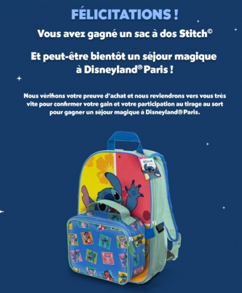 Pour les sacs à dos, les trousses ou les planches de stickers, la limite de gain est fixée à 8 dotations par foyer