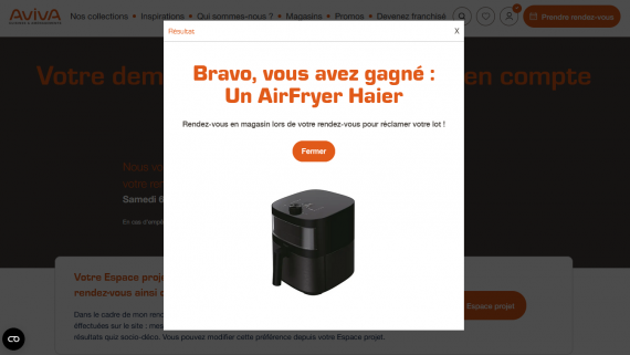 Une fois sur le site du jeu, il devra se rendre dans l'onglet « Prendre rendez-vous » puis cliquer sur « Rendez-vous en magasin » afin de remplir l'ensemble des champs obligatoires et prendre rendez-vous dans le magasin de son choix (excepté le magasin Cuisines AvivA La Martinique).