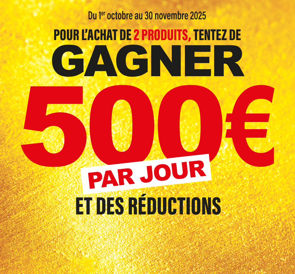 La somme de cinq cent euros (500 €), à gagner par jour, entre le mercredi 01 octobre 2025 à 00h00 jusqu'au dimanche 30 novembre 2025 à 23h59.