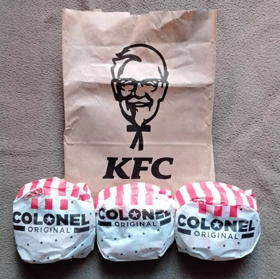 Aujourd'hui j'ai été chercher mes 3 hamburgers poulet gratuit ! C'est la première fois que j'allais dans un KFC , je suis habitué au Mcdo et BK.