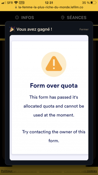 Je passe mon temps à gagné, mais je reçois aucune place de cinéma