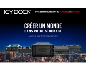 Entre le 01/02/2019 et le 29/02/2019 inclus, achetez un produit ICY DOCK parmi les références suivantes, ICY DOCK vous offre 15€ à 20€ de réduction sur une sélection de 5 produits :