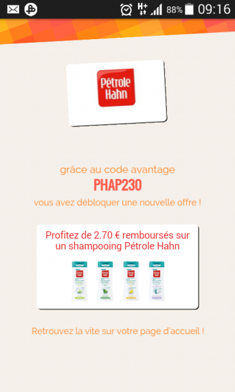 Pour tout ceux qui ont f idmarques avec le code PHAP230 2,70 de rembourse su un shampoing petrol hann ca fait du gratuit