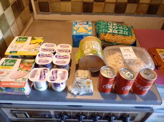 Pour le 4 eme pot de la laitière il y en avait 1 totalement brisee de pot en verre !!!et pour les pains de mie et les tranches de jambon je viens de faire 14 croques monsieur je vais les congeler j y est rajoutee une rondelle de chevre