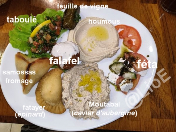 On à choisis un restau' Libanais, une assiette végétarienne (