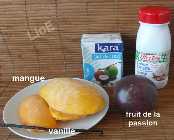 LioE a écrit : "Panna cotta coco mangue passion" source de la recette ICI