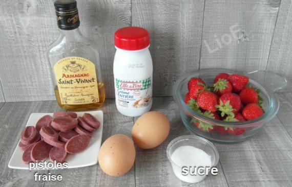 "Gaspacho de fraises et son crémeux aux pistoles fraise" source de la recette ICI
