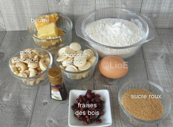 "Cookies au chocolat blanc et noix de cajou" source de la recette ICI