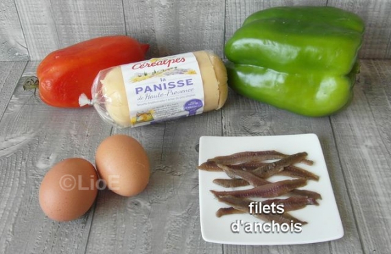 "Salade fraîche sur une panisse" source de la recette ICI ps: qu'une assiette avec des anchois, Mr LioE n'aime pas les anchois=thon