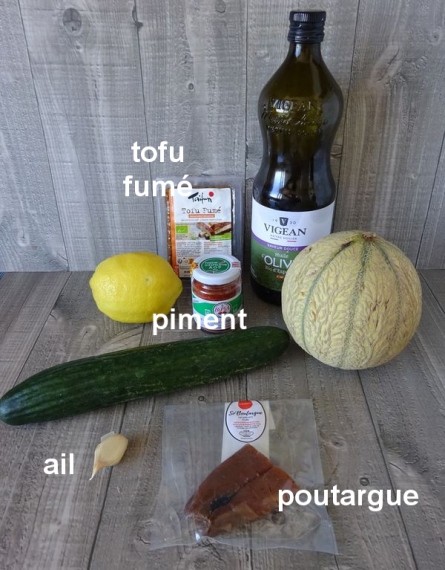 "Gaspacho de melon et boutargue ou poutargue" source de la recette ICI