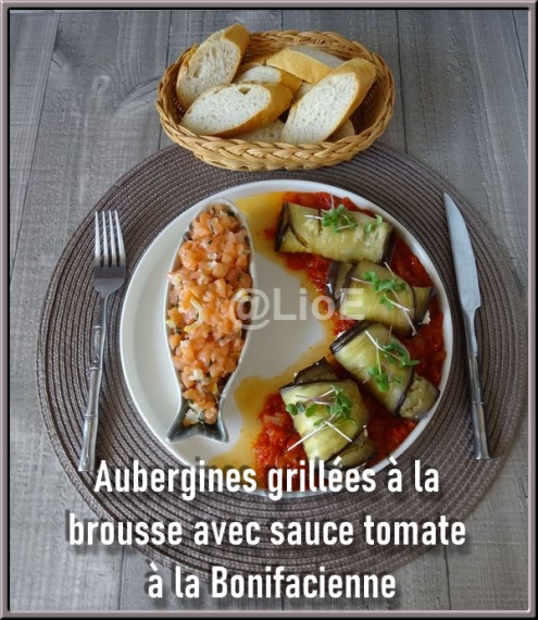 "Aubergines grillées à la brousse avec sauce tomate à la Bonifacienne" source de la recette ICI Ps: très bon, je l'ai accompagné d"un tartare de saumon
