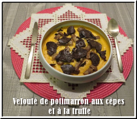 LioE a écrit : "Velouté de potimarron aux cèpes et à la truffe" source de la recette ICI