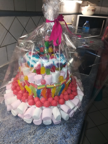 Nos.petite creation a ma.fille (4ans) et moi pour son anniversaire. Nous avons fabriqué le.socle en carton.
