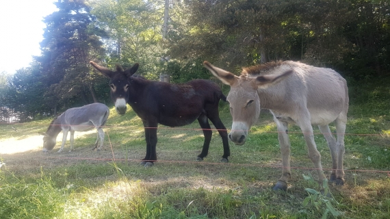 Aller donner a manger aux ânes et aux 2 chevaux ce matin puis après-midi baignade et bronzage également