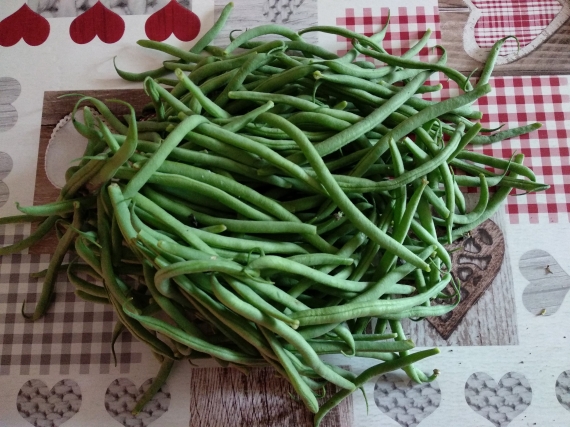 Ce matin j'ai cueilli les haricots et les brunes, j'ai gardé quelques prunes pour manger à la main et là je suis en train de faire de la confiture