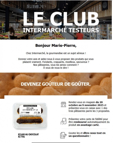 C'était par l'intermédiaire d'une newletters de Intermarché,j'avais reçu par mail pour s'inscrire au club testeur .Mais c'était il y à au moins 4-5 ans et maintenant il est impossible de s'inscrire ,il fallait le faire que à ce moment-là .Donc ils recherchent pas d'autres testeurs....