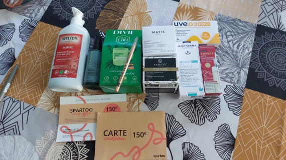 une box de 9 produits beauté ( valeur 226,06) + 1 carte cadeau 150 euros
