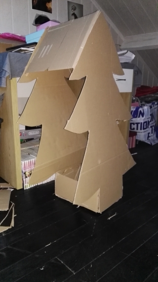 Mais du cou je fais mon sapin en carton de la mort je suis pas sur que ça va ressembler à quelque chose mais vu que les bierres c est gros Ba il est épais quoi lol