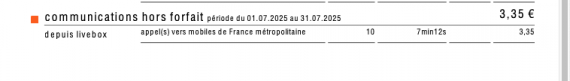 y'a un mois où ça donne 3,35 euros de hors forfait et ça semble etre des appels vers des mobiles