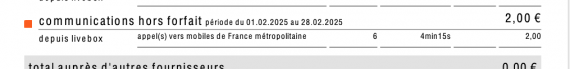 ici aussi, en mars, du hors forfait lié à des appels vers des portables