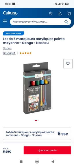 Merci pour ton retour. J'ai trouvé ça chez Cultura. Je sais pas si c'est la même chose. Je vais regarder les paint markers aussi.
