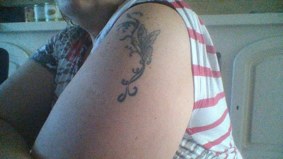J'ai 1 tatouage sur l'omoplate droite : il est petit 3 cm sur 2 cm environ ..