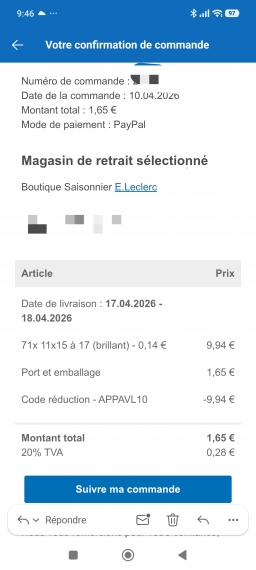 Je verrai demain si j'aurai le droit a mon chèque de 10€. Commande de 25,90 mais payé que 2,77€.
