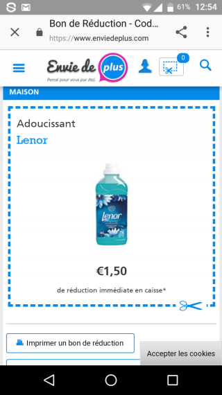 Je remets le détail en image. LENOR 1+1 = 3,45euro les deux - 1,05e par flacon (bdr à charger sur carte, attention sur bdr carte apparemment c est que sur senteur "coup de foudre " = 3,45-2,10euro = 1,35euro les deux soit 0,68euro le flacon (ca c est sans risque de refus)