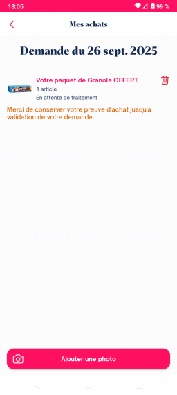 100% remboursé sur un paquet de Granola lait ou noir. Reçu ce martin sms et offre valable 7 jours .