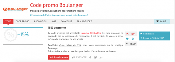 Cliquez sur une boutique (ici Boulanger) et vous atterrirez sur cette page :